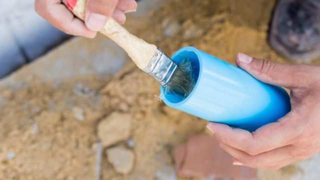 - Aplica el imprimador para tubo de plástico en la parte de adentro de los manguitos conectores.