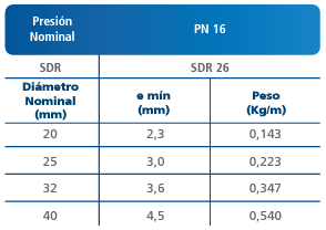 Presión nominal PN. Es la presión de trabajo máxima a la cual estará sometida la tubería durante un período mínimo de 50 años. En caso de no conocer este dato contactarse con servicio técnico para recibir asesoramiento.
