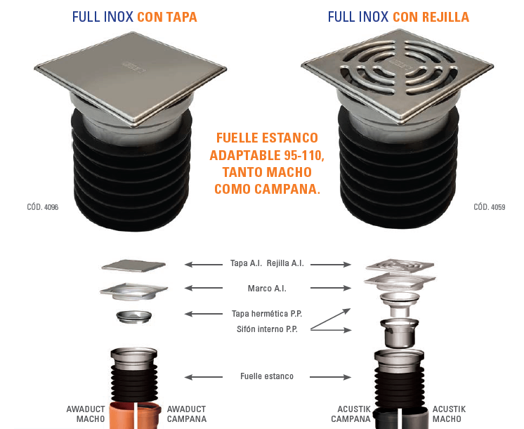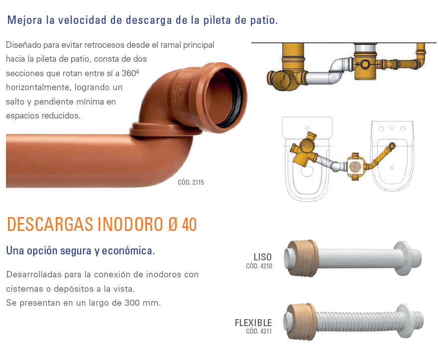 proporcionan un cierre hidráulico total, que impide el pasaje de olores hacia los ambientes.