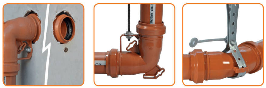 - Los Codos HHC con sujeción también facilitan el empotramiento en placas de yeso, madera, etc.
