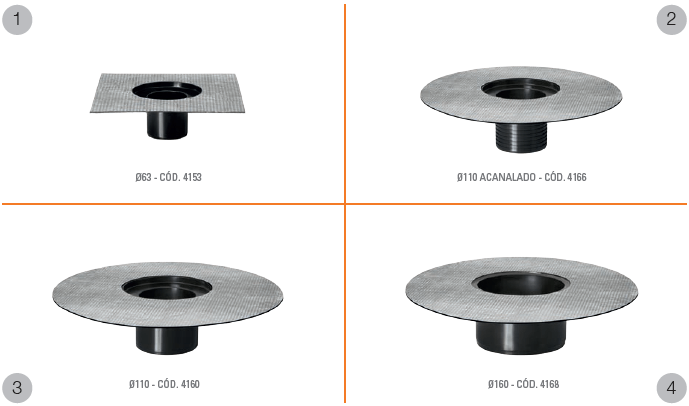 Los discos con membrana fueron diseñados especialmente para impermeabilizar desagües de azoteas. Estos accesorios presentan una membrana asfáltica unida al disco de polipropileno, asegurando de esta forma la estanqueidad del desagüe de azotea. Se presentan en diámetros Ø63, Ø110, Ø110 Acanalado y Ø160.