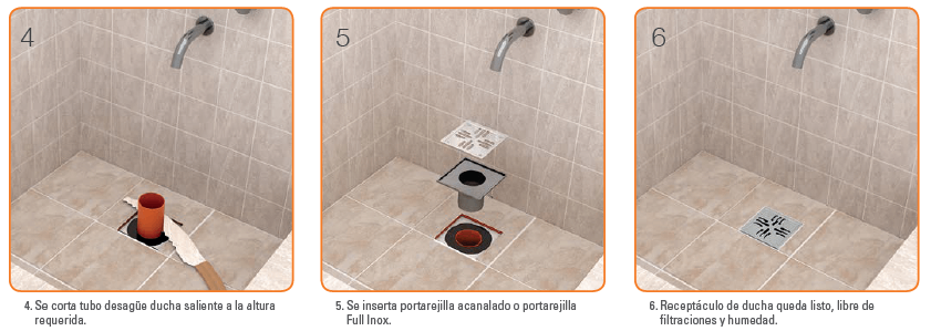 En duchas, además permite el fácil acceso para su limpieza periódica por acumulación de jabón y cabellos.