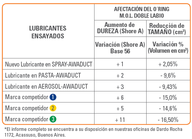 Nueva solución Lubricante Awaduct en spray, la evolución en lubricantes Awaduct, únicos para garantizar la vida útil del O´ring M.O.L. doble labio.