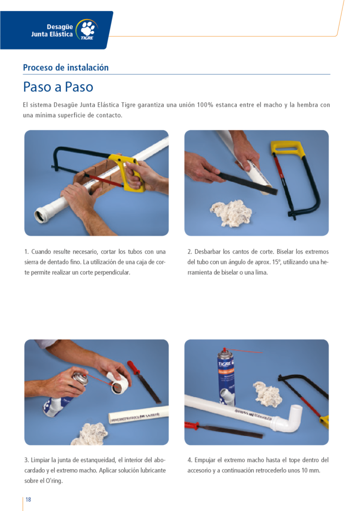 Proceso de Instalación del Sistema «Desagüe Junta Elástica Tigre» Accesorios de Junta Elástica disponibles en Sanitarios Plásticos Tuberias de Junta Elástica disponibles en Sanitarios Plásticos